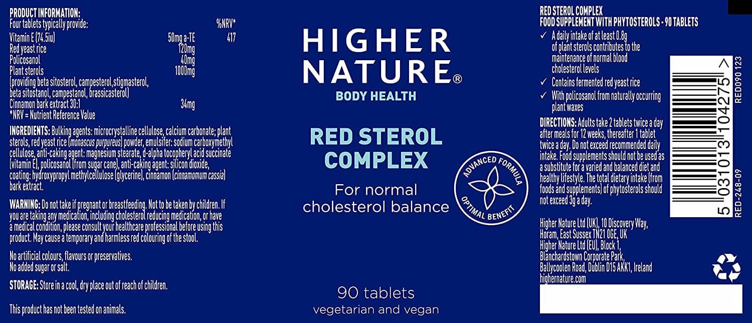 If you need support for maintaining healthy cholesterol levels Red Sterol Complex is for you. A unique combination of plant sterols, red yeast rice, a traditional Chinese extract from rice fermented with monascus purpureus, and policosanol extract. Plant sterols block the absorption of cholesterol from your diet to help maintain normal blood cholesterol levels, whilst red yeast rice has been used for centuries for its potent health giving properties. Policosanol is found naturally in sugar cane waxes. The formula also includes cinnamon bark extract and vitamin E for complete support. Vitamin E helps protects against the oxidation of cholesterol.